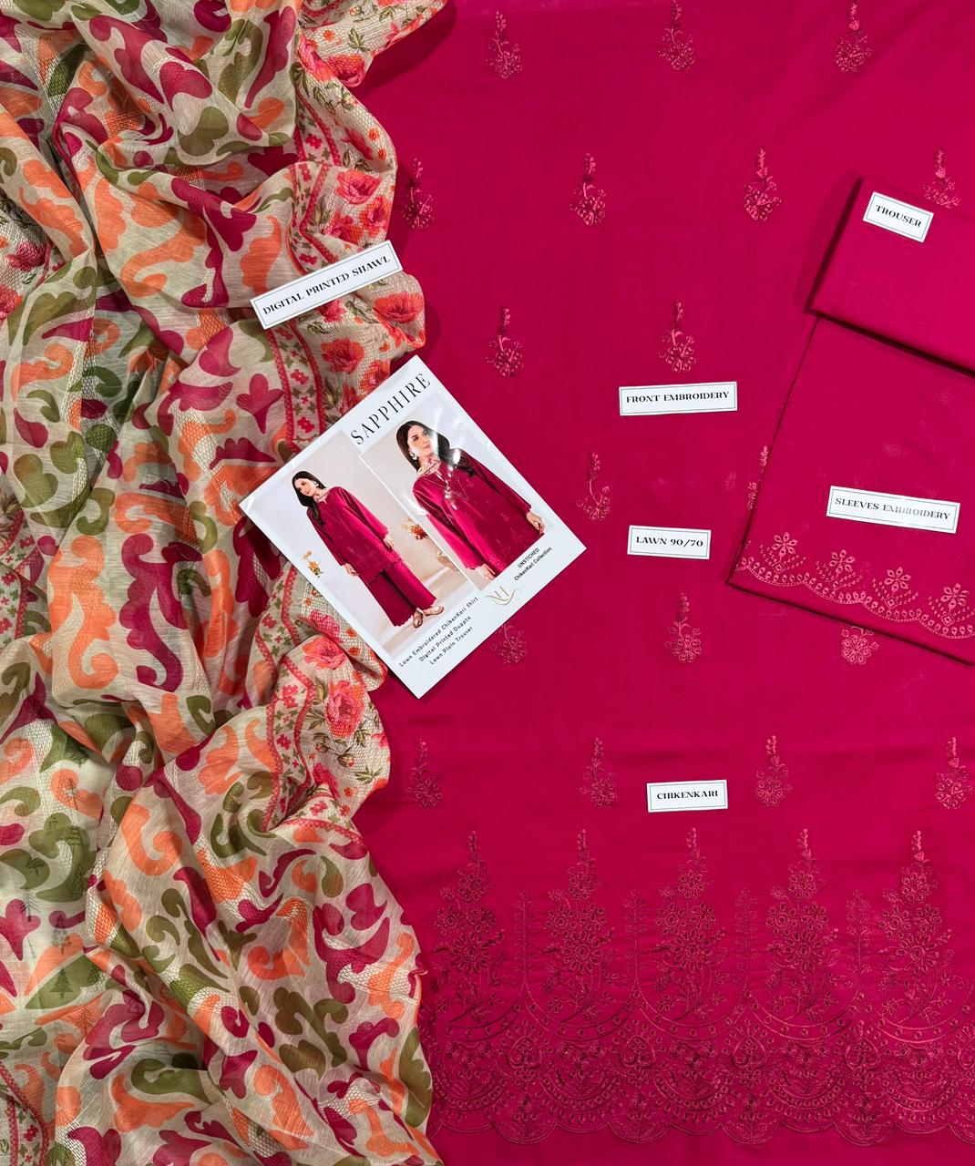 SAPPHIRE LAWN 3-PIECE EMBROIDERED CHIKENKARI